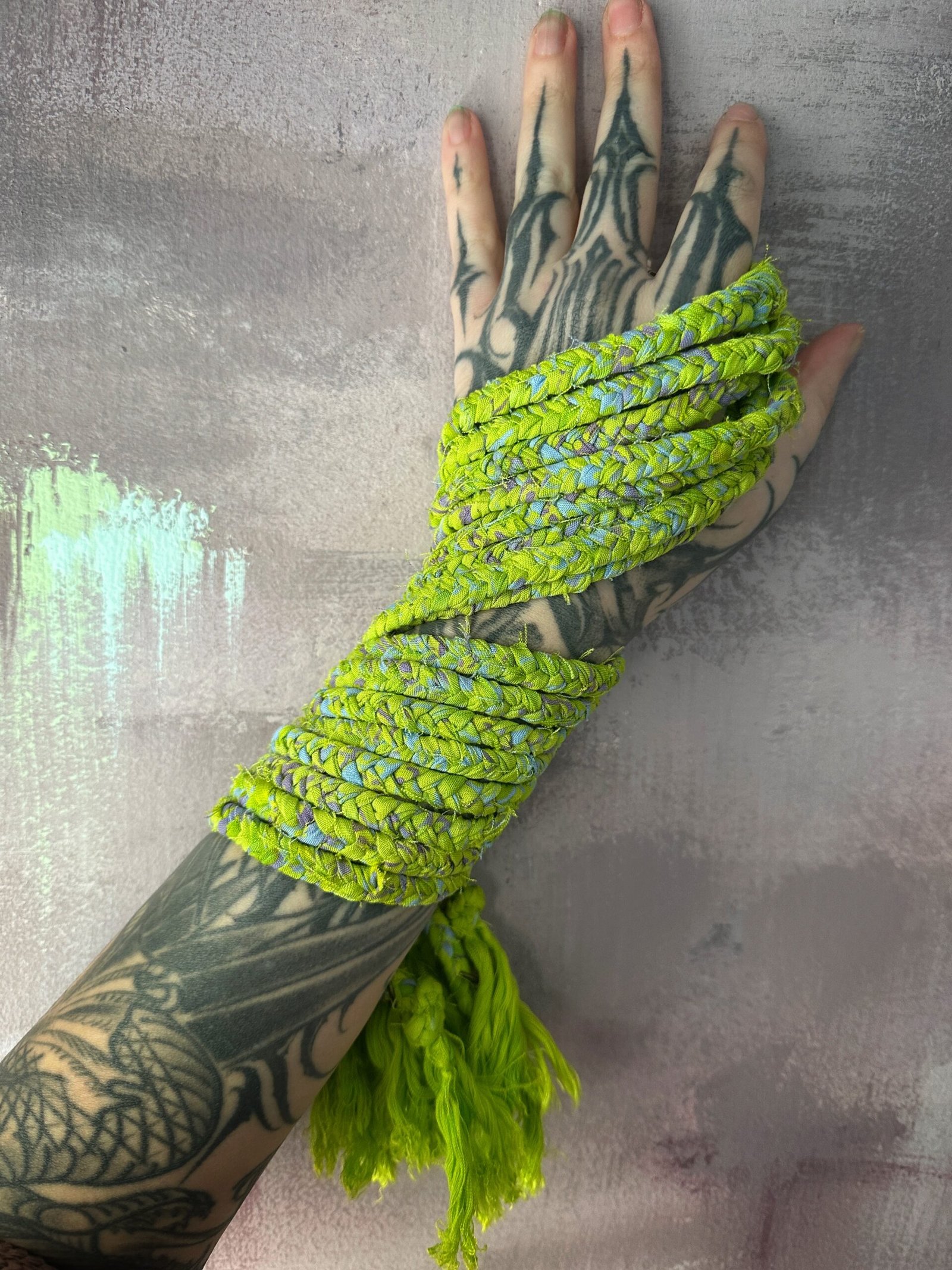 Sizing: The braid has a clasp on one end and a ring near the knot. The ring can be repositioned with a pair of pliers, so the fit is versatile! You can also make a simple knot in the braid to shorten it. How many times the braid wraps around your wrist will depends on the size of your wrist and where you want the ring (and how much tassel you want hanging down)!